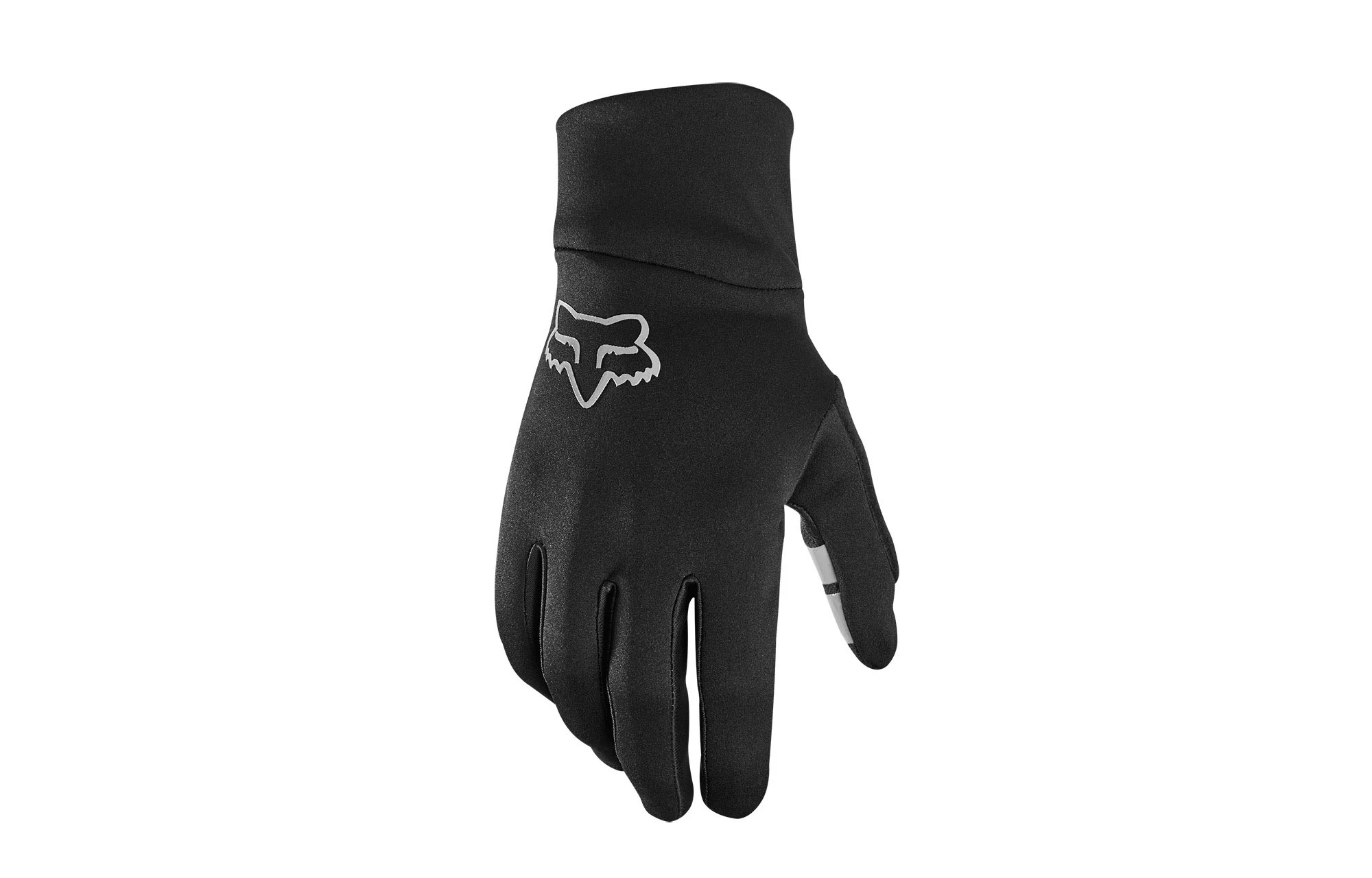 -Bouts des doigts et du pouce en silicone-Doublure en molleton brossé pour une meilleure isolation et plus de confort-Essuie-nez sur le pouce-Fils conductibles sur le pouce et lindex compatibles avec les écrans tactiles-Poignets prolongés pour vous protéger des intempéries, avec tirette à logo Fox facilement accessible